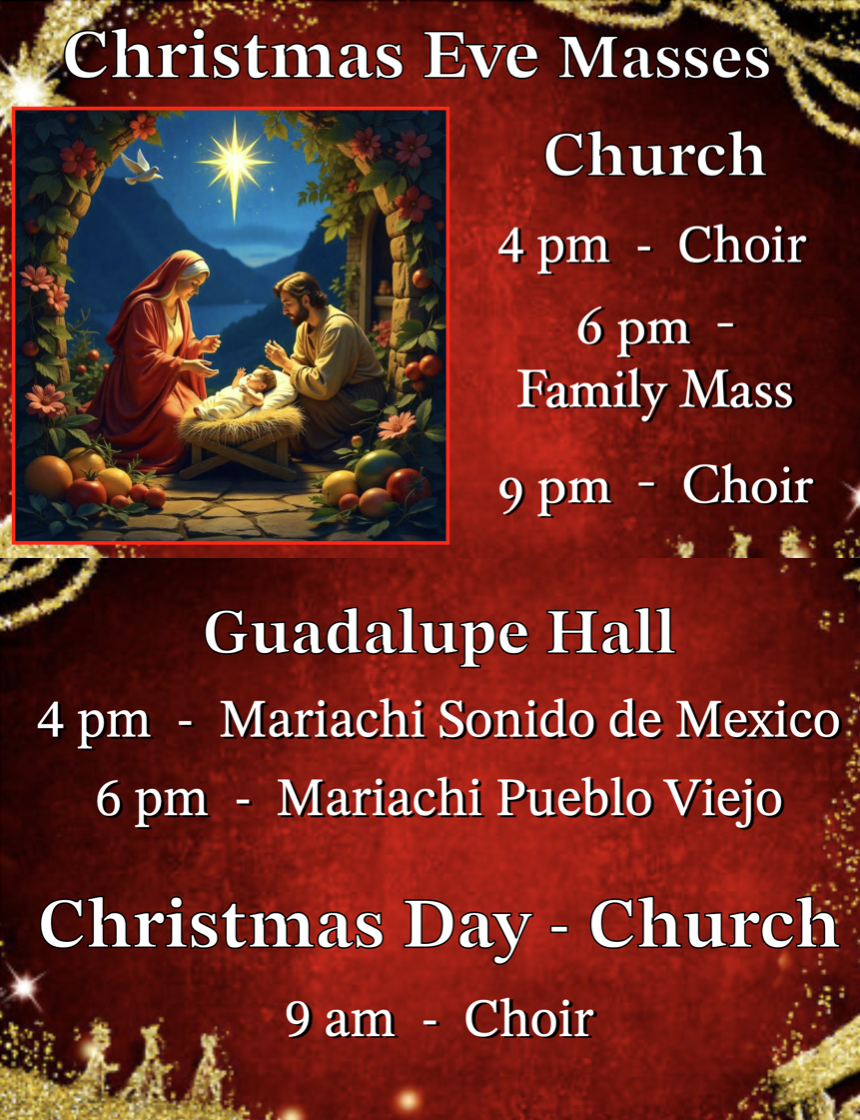 Saturday 3:00 p.m. - 3:45 p.m. or call the office to make an appt. 520-884-9021